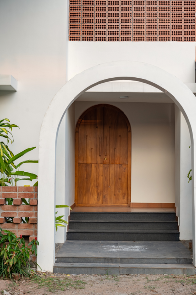 The concept of the residence is an attempted derivative of the site context and the user behavioral patterns. The site, bearing an introverted character, is located within a very extroverted stretch with rich brahmin cultural background and has a close proximity to Padmanabhaswamy temple , Trivandrum. The built has incorporated the elements from the said context ranging from spatial elements like thinnais (abutting the road) to design elements like arched doorways, without disturbing the urban fabric.